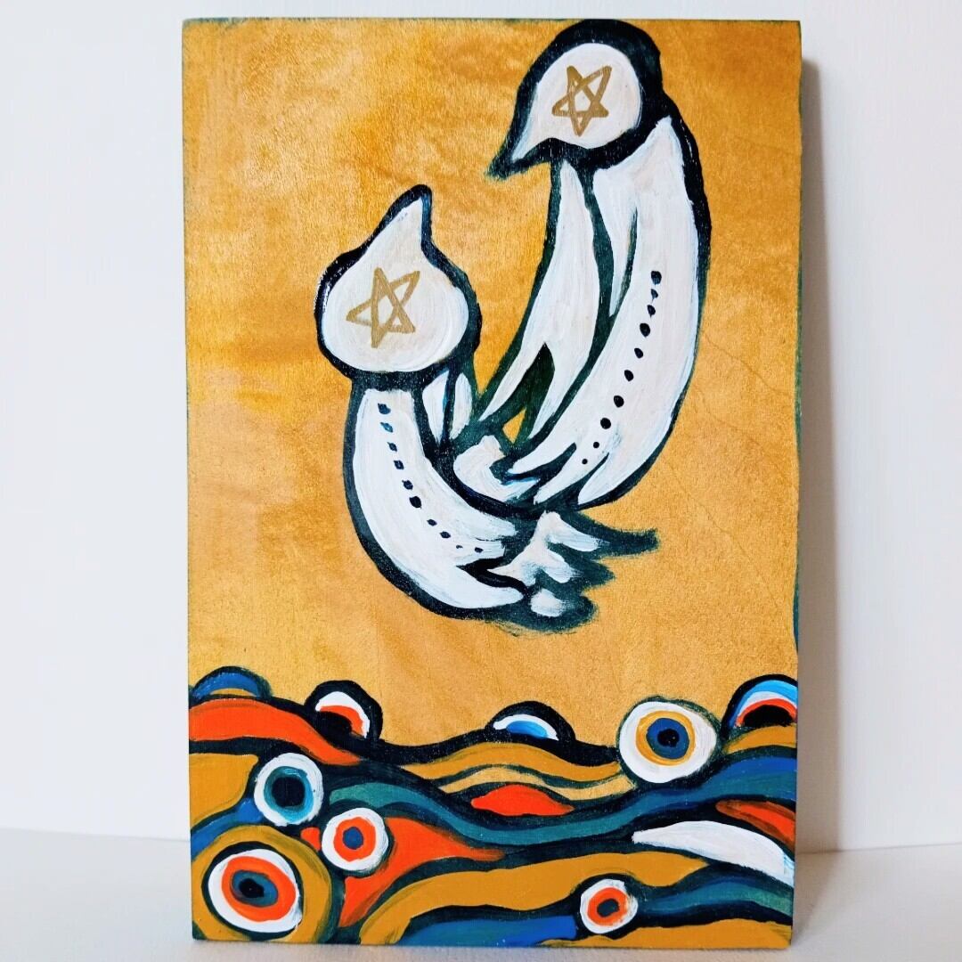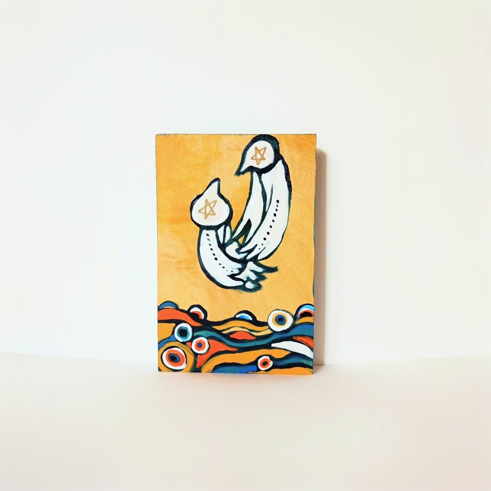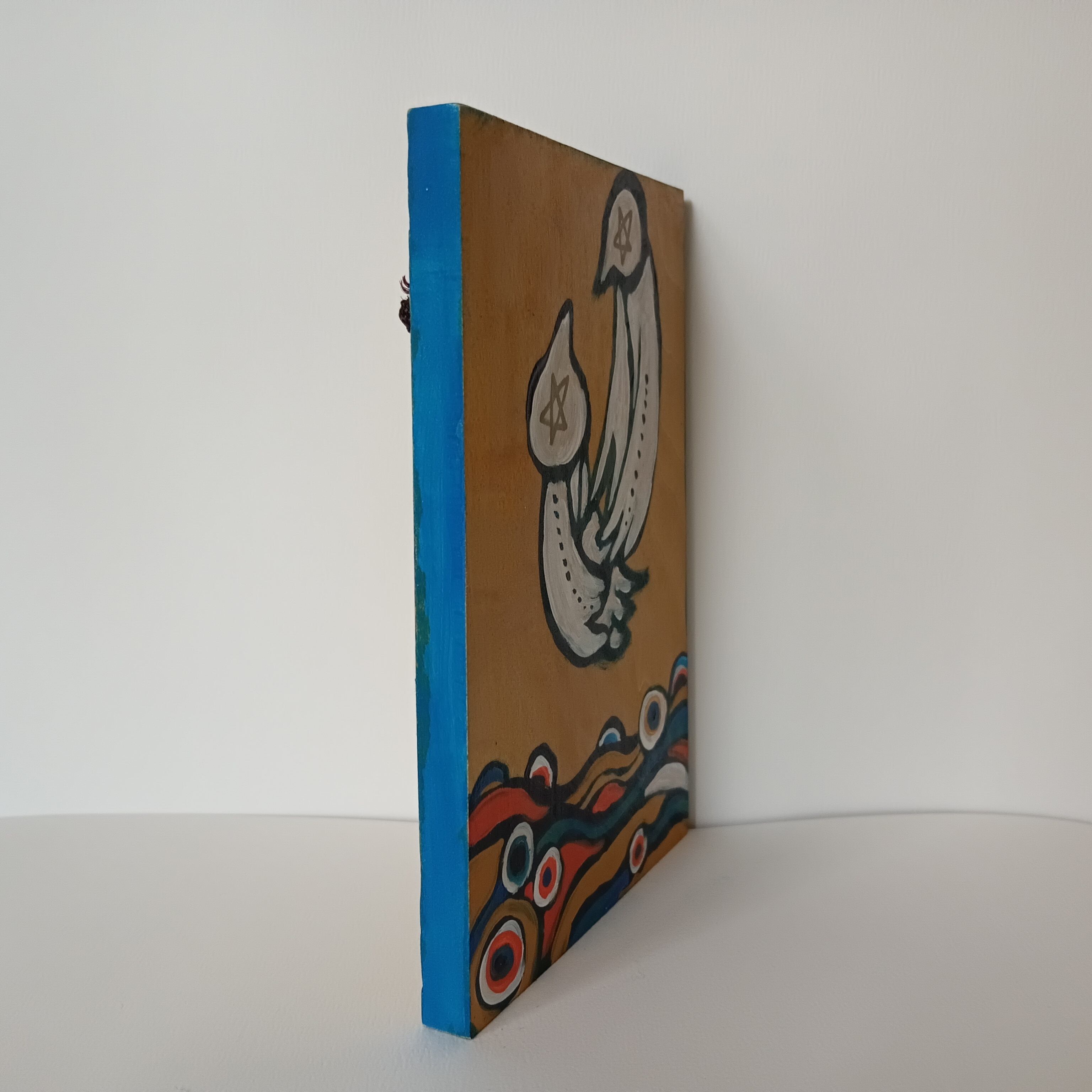 The picture is painted with acrylic paint on a wooden board.