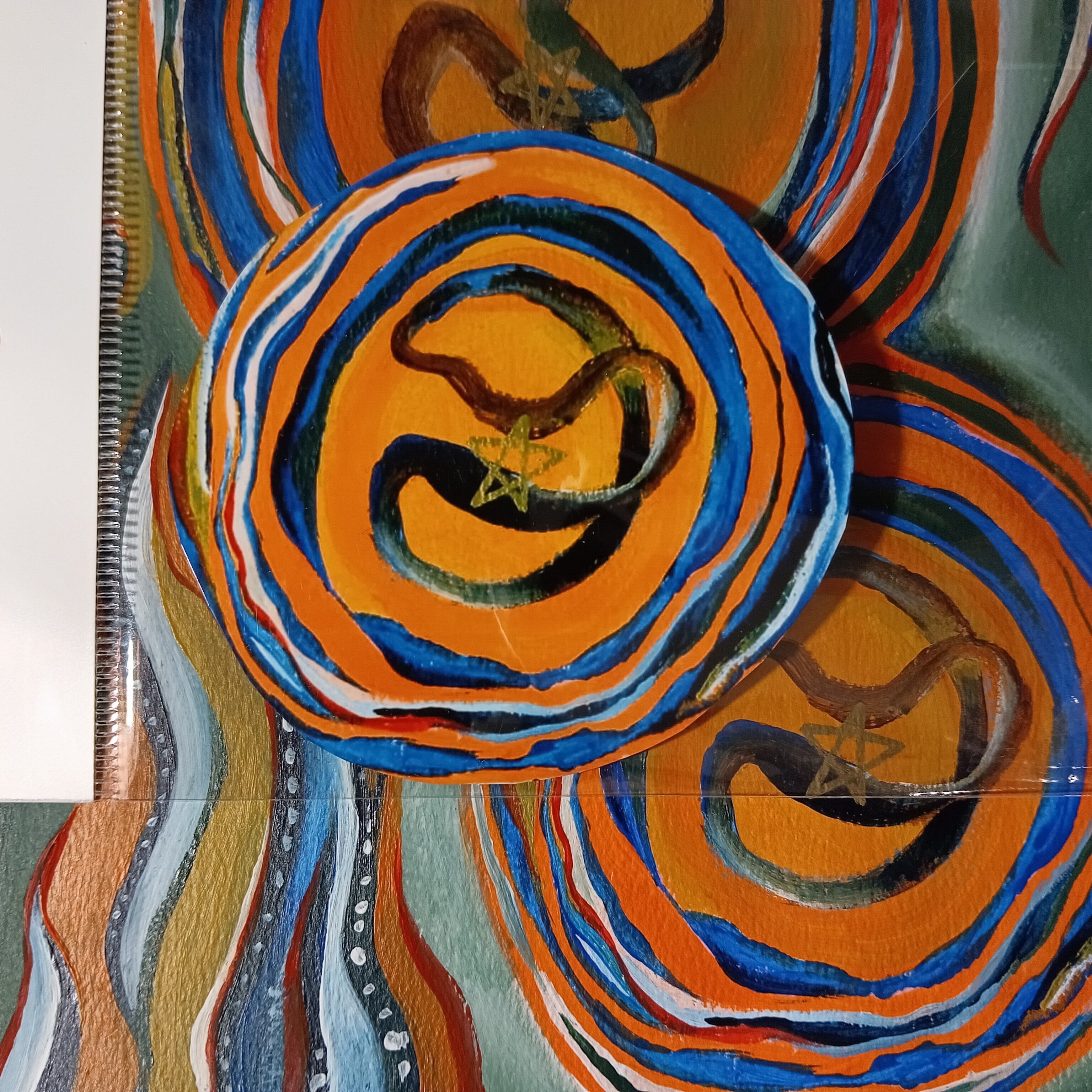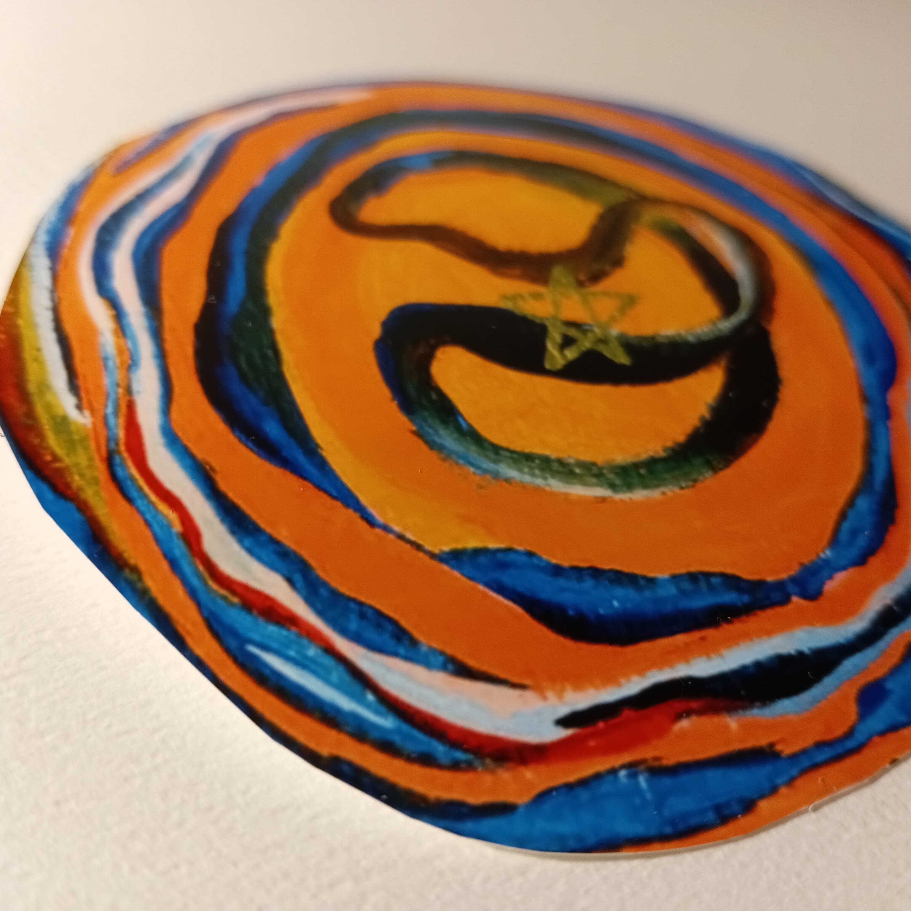 ツツミソウの絵画作品「母鳥と子」の、子供が眠る巣の部分をステッカーにしました。