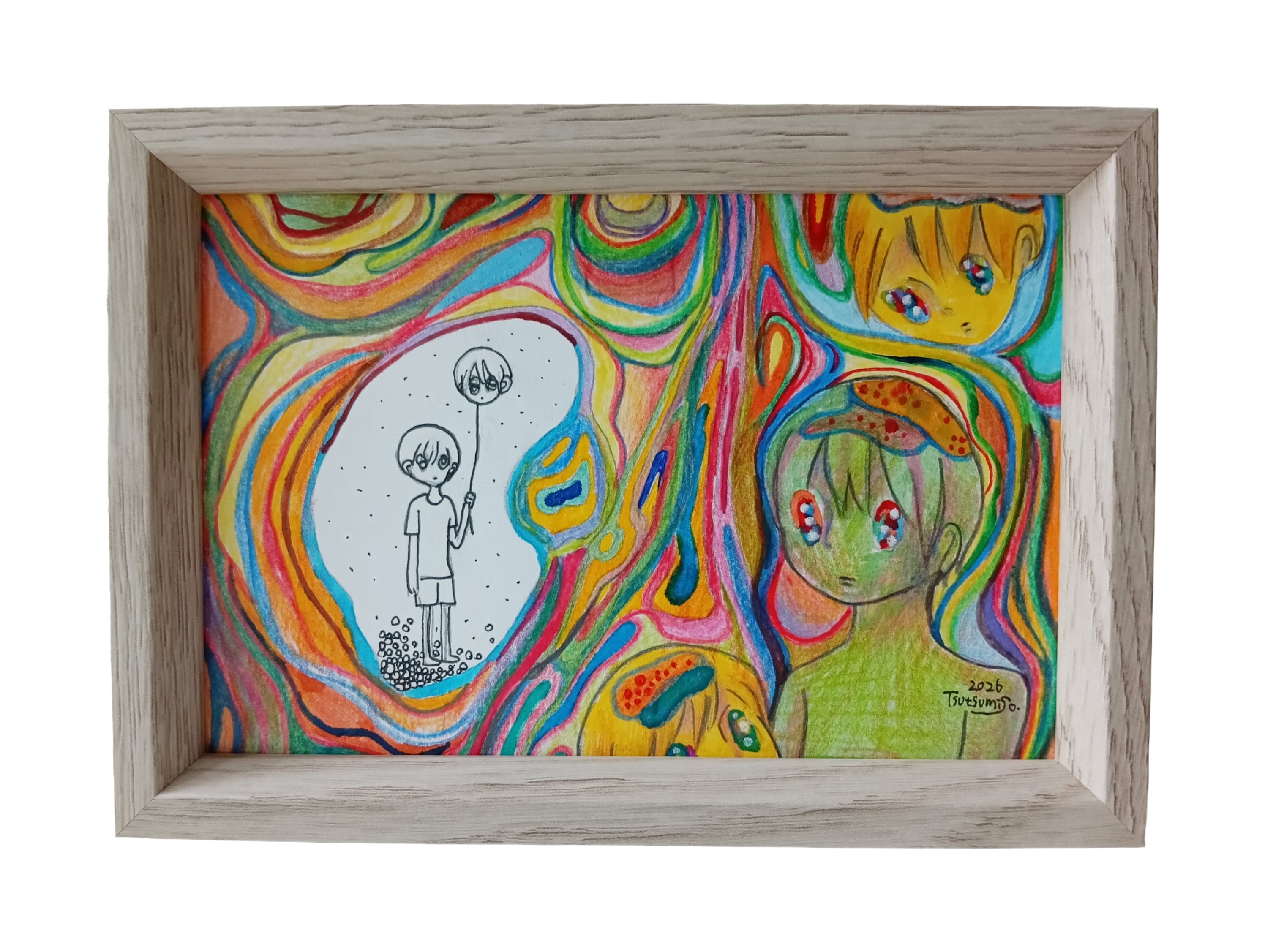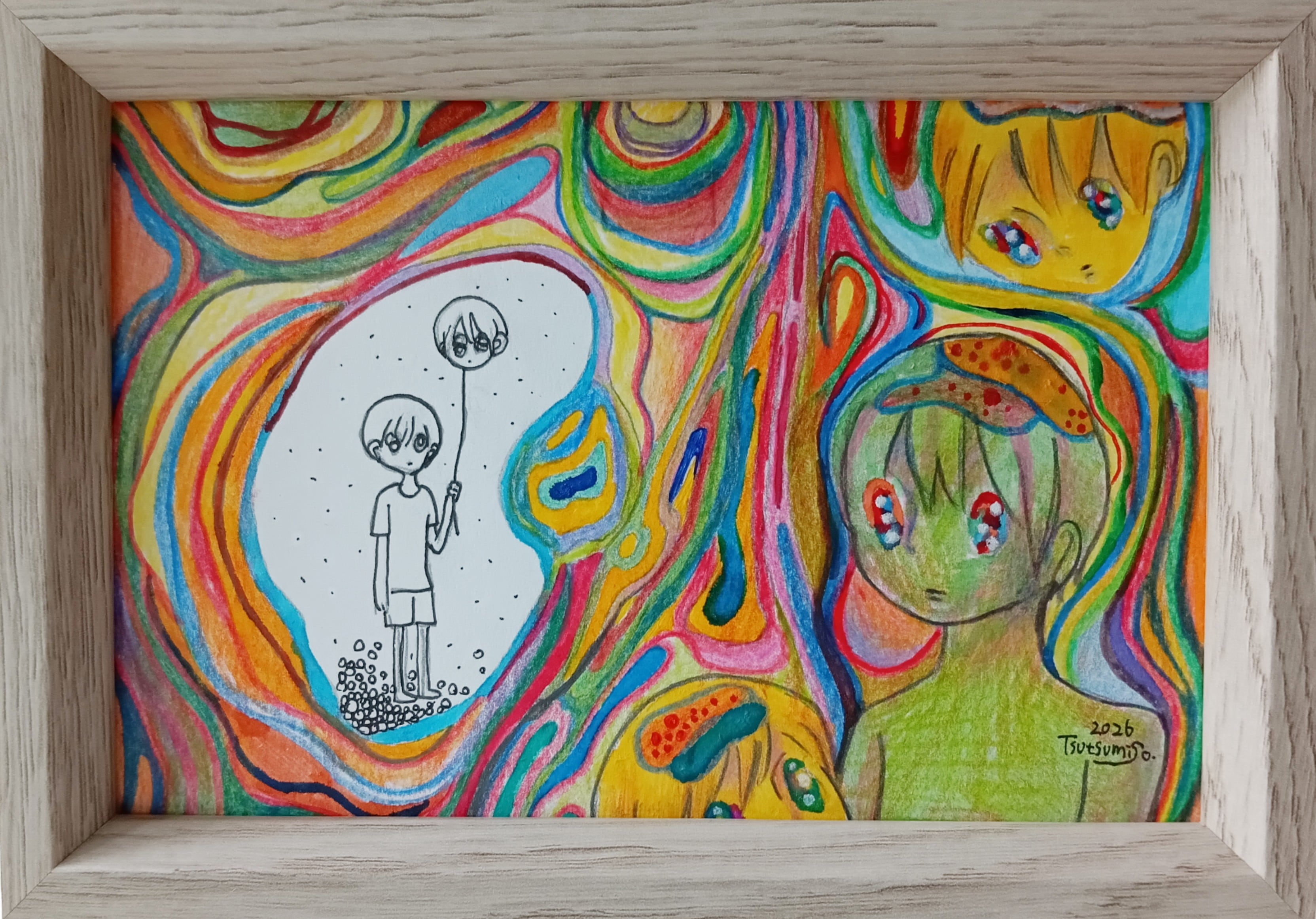 素材 : 紙に鉛筆、色鉛筆、カラーペン