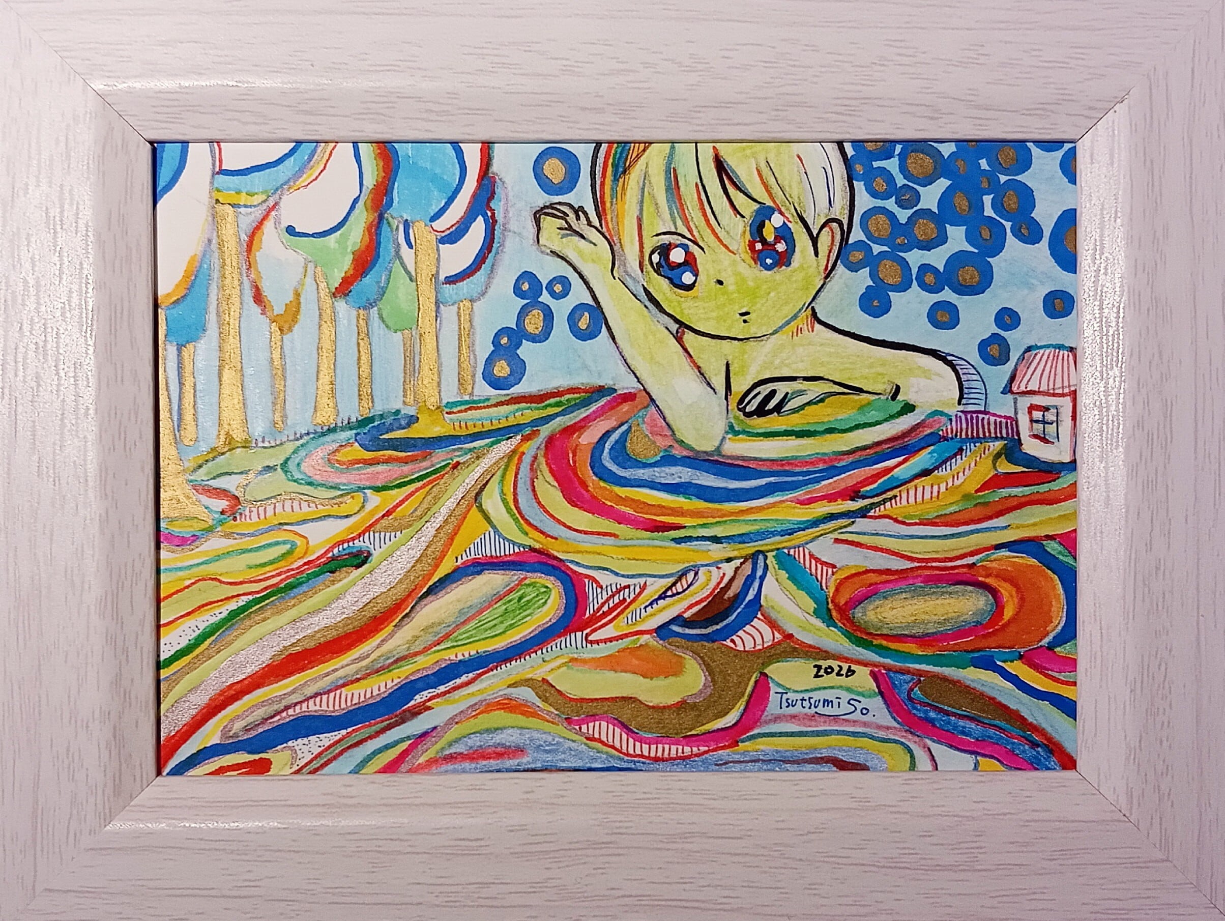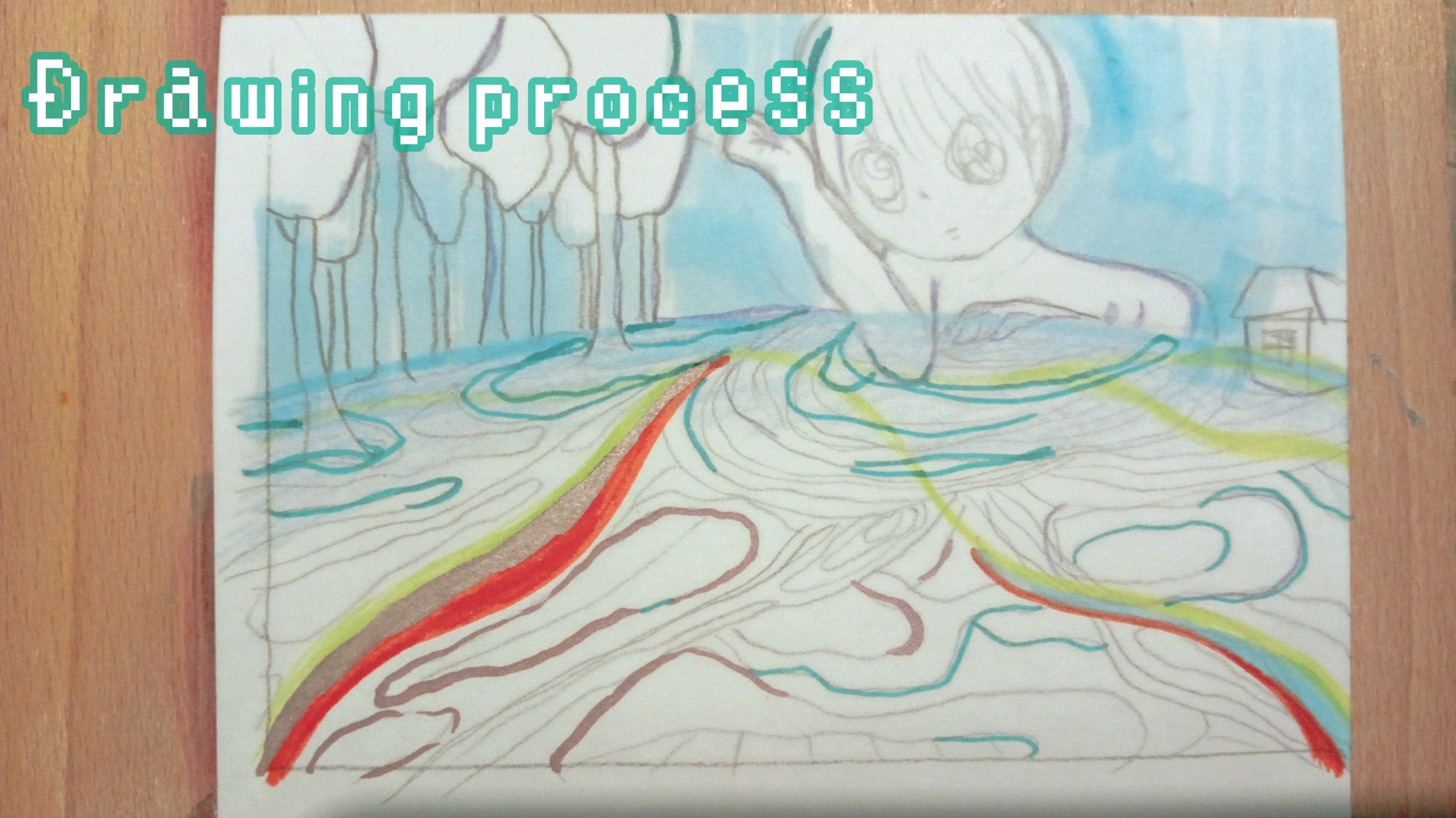 素材 : 紙に鉛筆、色鉛筆、カラーペン、マーカー